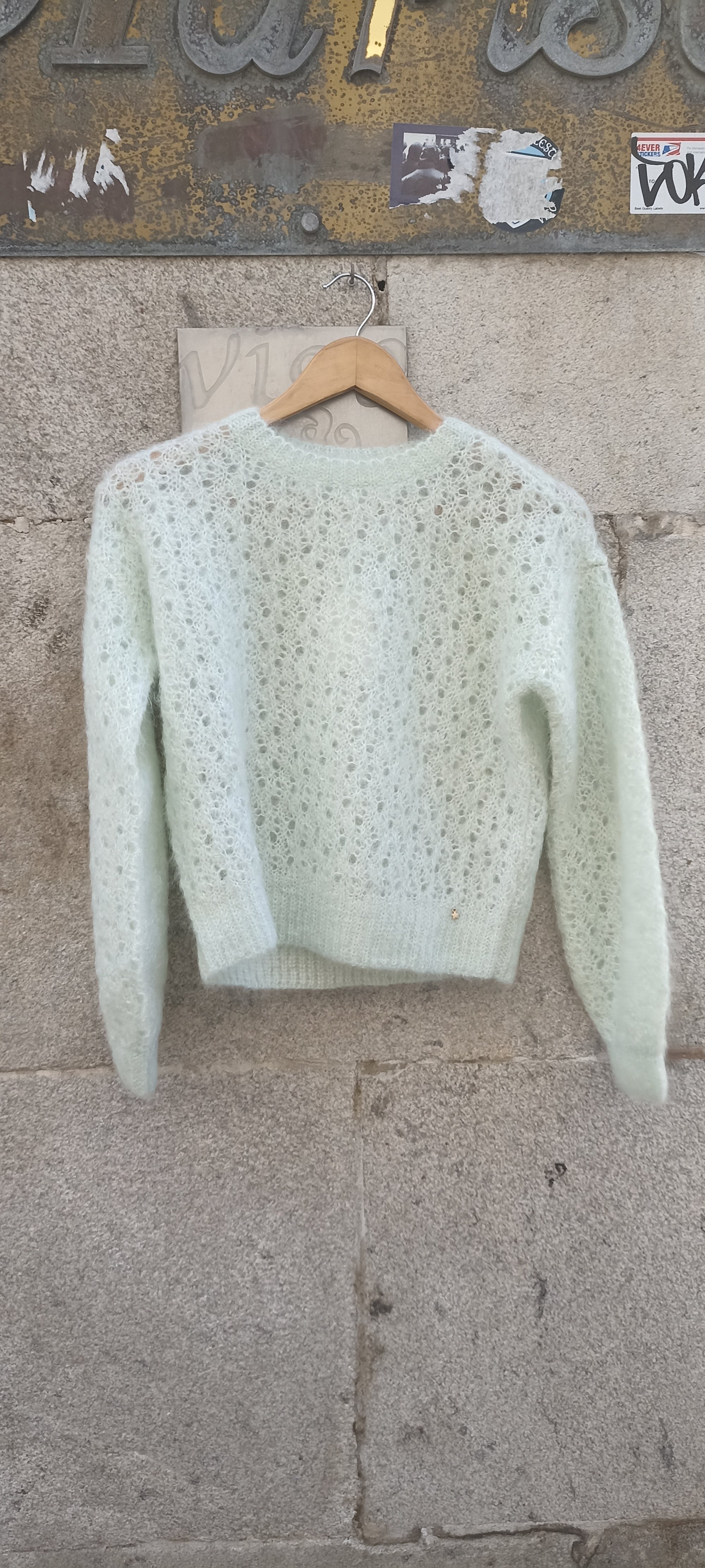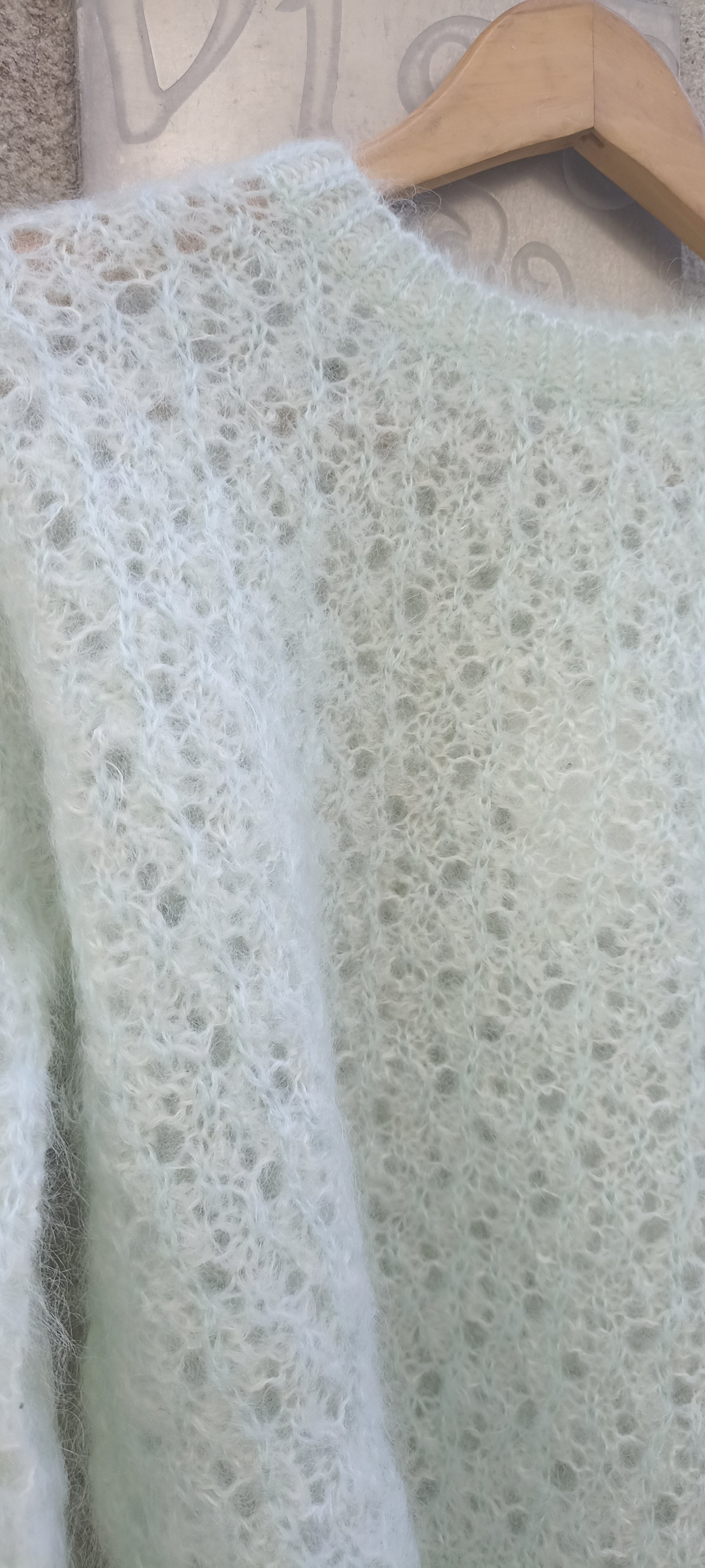Bohemio chic y suave, con su punto calado y su corte ligeramente oversize, el jersey Chimon apuesta por una gama de colores delicados que iluminarán el vestuario de invierno.