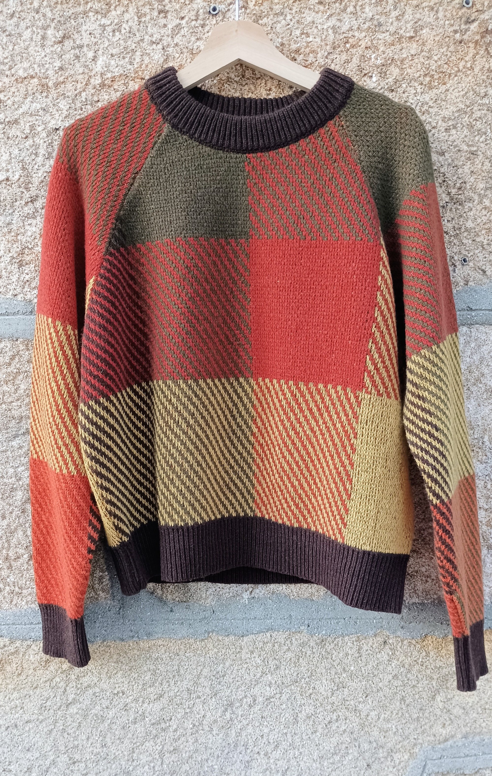 Jersey de lana 100%, cuello redondo, estampado cuadros.