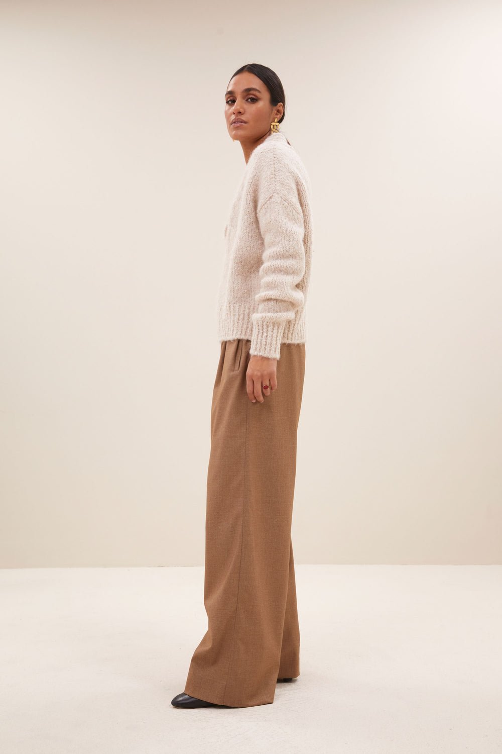 Descubre la perle pullover, un clásico atemporal con un ajuste cómodo y holgado. Este pullover casual con escote en pico y mangas largas ofrece estilo y confort. Perfecto para el día a día, esta prenda proporciona un look relajado pero cuidado. ¡Un imprescindible versátil para tu armario!