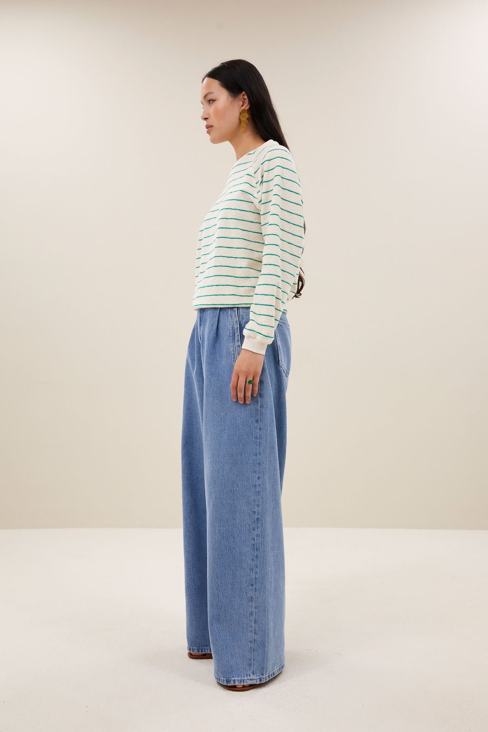 1-Sudadera bonne slub sweater | green lake stripe