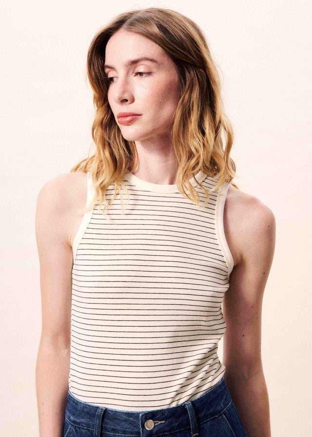 Camiseta de tirantes de punto acanalado con rayas horizontales para mujer