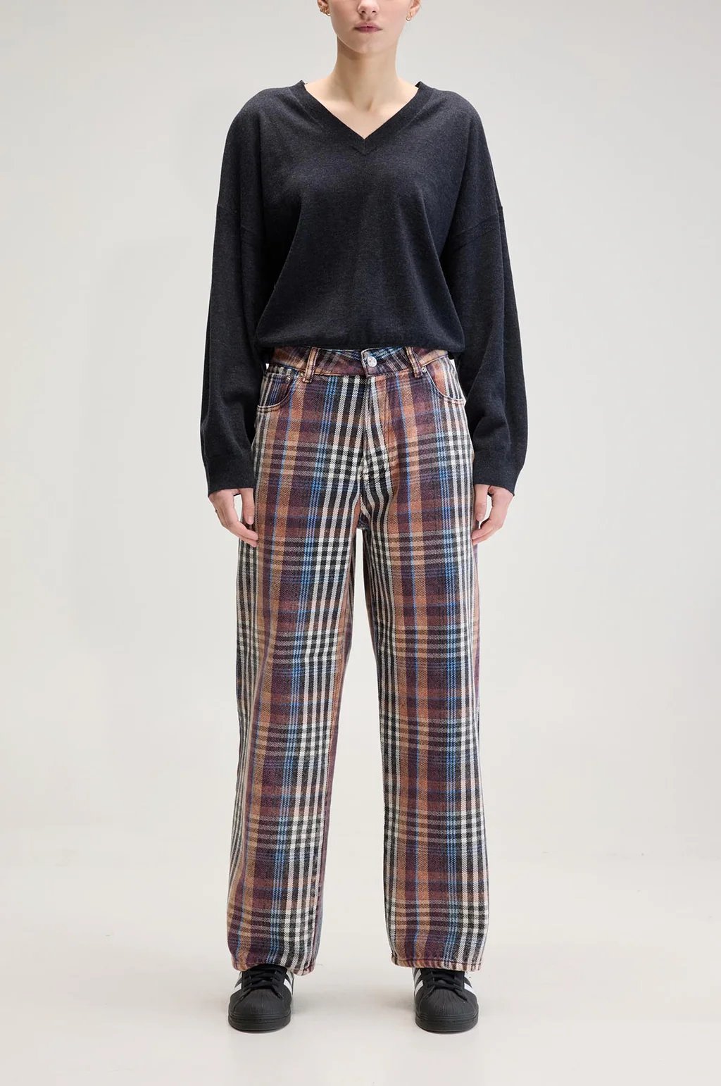 Una nueva incorporación a nuestra oferta de vaqueros esta temporada son los vaqueros Paty52. Con un encantador estampado a cuadros en negro, marrón, burdeos y blanco, estos vaqueros tienen un estilo relajado que se realza con su pernera ancha y silueta holgada. Un par para usar una y otra vez.