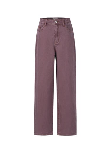 Pantalón denim color berenjena, estilo 5 bolsillos, pierna ancha y confeccionado en 100% algodón.