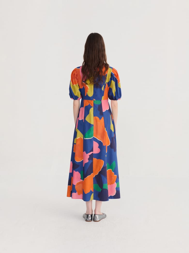 3-Vestido Blooming Color Pattern Puff Sleeve